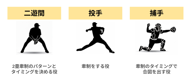 投手:牽制をする役割として、牽制動作のスピードやコントロールなど、2塁牽制のレベルに大きく影響します。