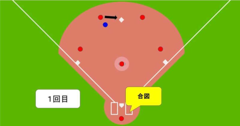 1. 投手が一回目の牽制を行う。(ランナーをベースに戻らせる)