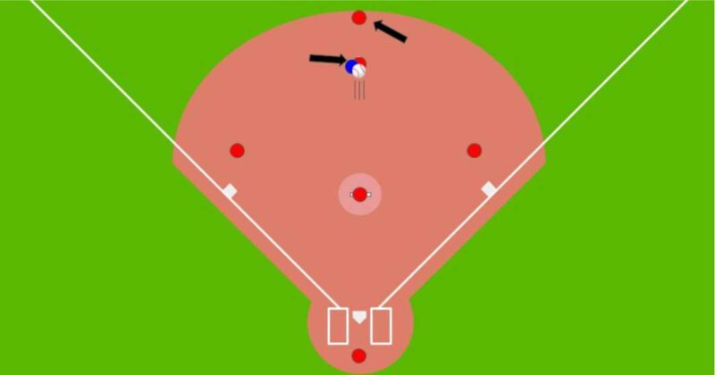 このタイミングで投手が2塁ベース上に投げることで、ベストのタイミングになります。
